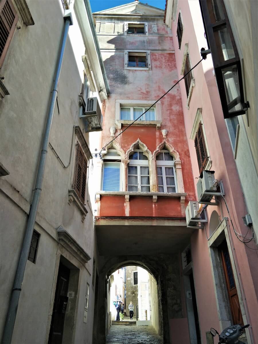 After lunch wandering back through tiny lanes with rows of multi-coloured, multi-storied houses lining and shutting out light we found a little jewellery shop with locally made earrings. My Piran souveneir.