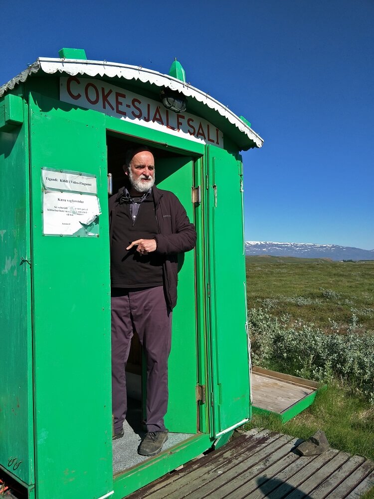 In the middle of this apparent “nowhere” a small green building emerged. A vending machine surrounded by a pretty and colourful picnic setting. Inside the little room a vending machine supposedly dispensing snacks and drinks.