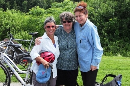 We continue our ride down a ‘rail to trail” which means that we have the track all to ourselves with no cars. We ride through fields and see a few other cyclists.