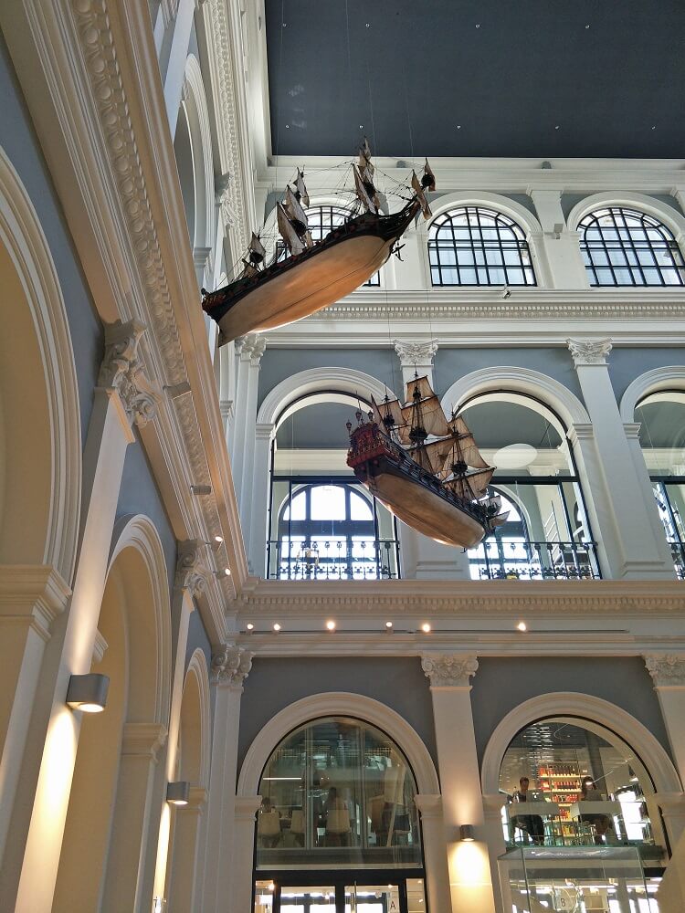 The morning dilemma – where to go before the train to Koln. I don’t know where it came from but decided I would wander from the hostel looking up. Funny what you find and where you end up. I passed by the ornate Rathaus and discovered a large ornate building – the Hamburg Chamber of Commerce. Under renovation though much of the ground floor was open to wander. Exhibits were dotted around the rooms – an ancient sea mark used to warn ships of shallow waters and sandbanks. A wooden cone shaped structure thought to be over 300 years old. Nearby were models of “escort ships” which were the origins of the Chamber of Commerce – ships commissioned to protect commerce shops from pirates in the 17th century.