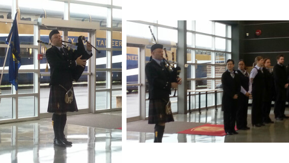 As the train left the station all the check-in staff lined up and waved the train off complete with flags completely over the top.