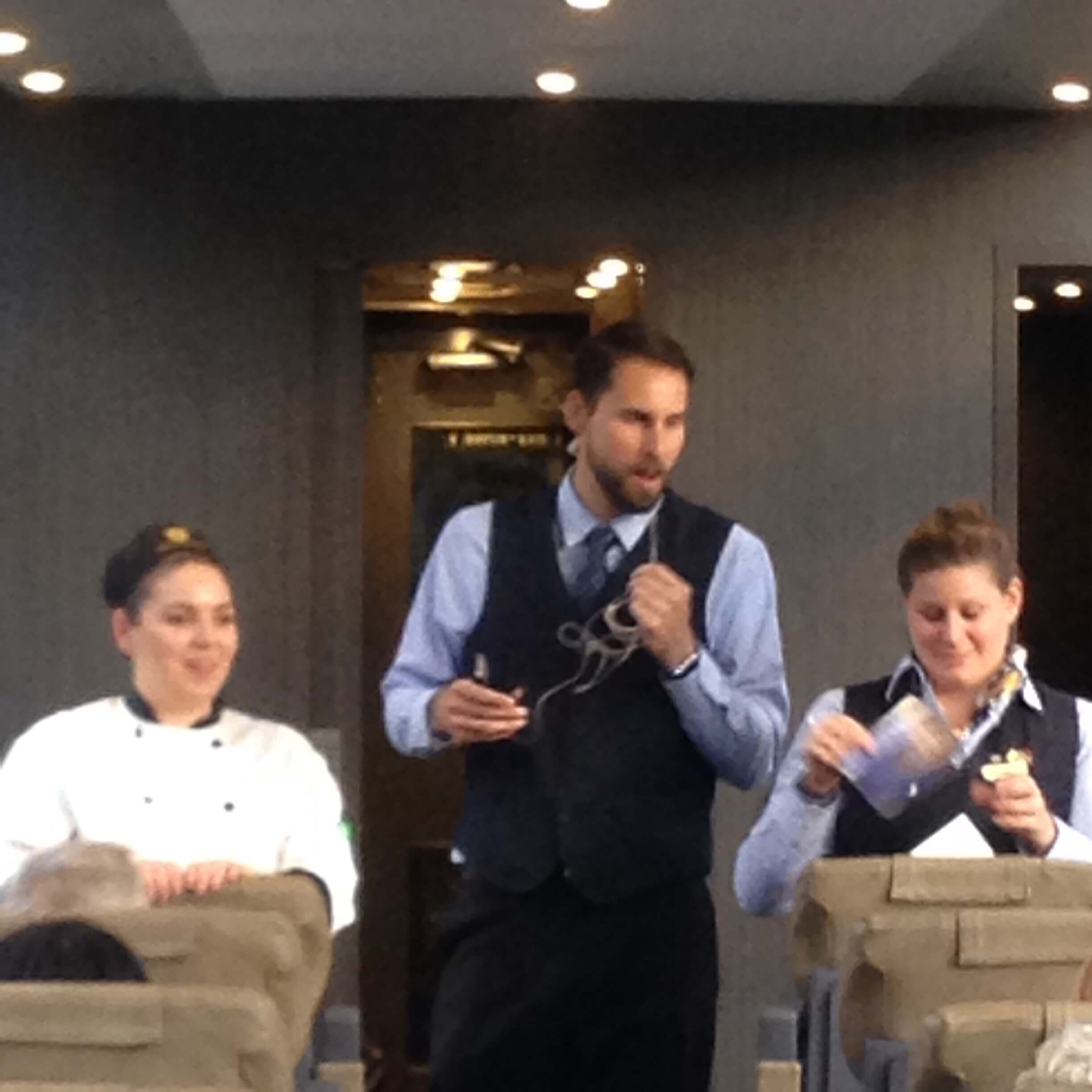 Each train car has its own crew in ours it was David, Sam and Chelsea, young Canadians, who seemed to love their job. Each went out of their way to look after us.