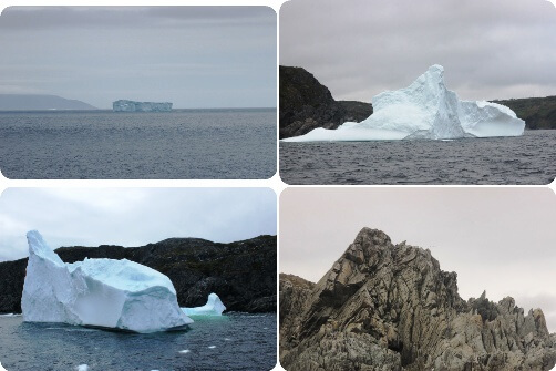 After lunch a whale watching tour which resulted in sighting a faraway spout and several icebergs including a far off large “berg” apparently about 100feet tall and from memory 12 miles long (first photo below).