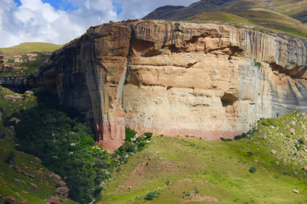 Our Mzansi bus crew picked us up this morning for the return trip.Ishmael and Mduzi in good form.Fairly drizzly and overcast drove past the spectacular Wagendrift Dam until we got to the Amphitheatre and Golden Gate National Park.Spectacular rock formations.