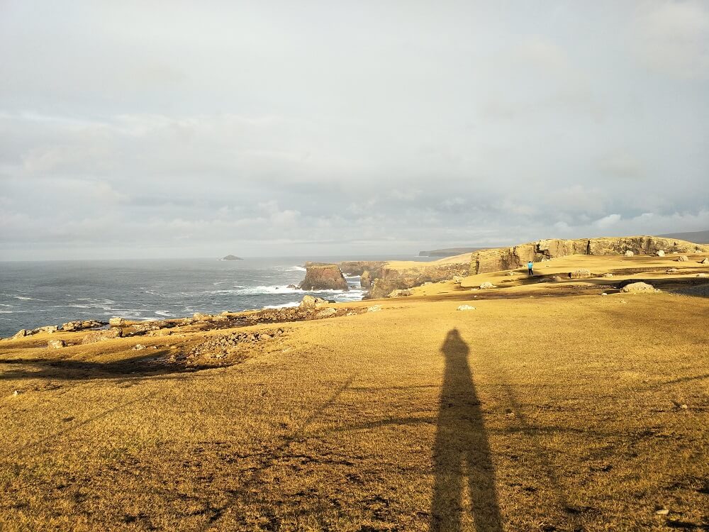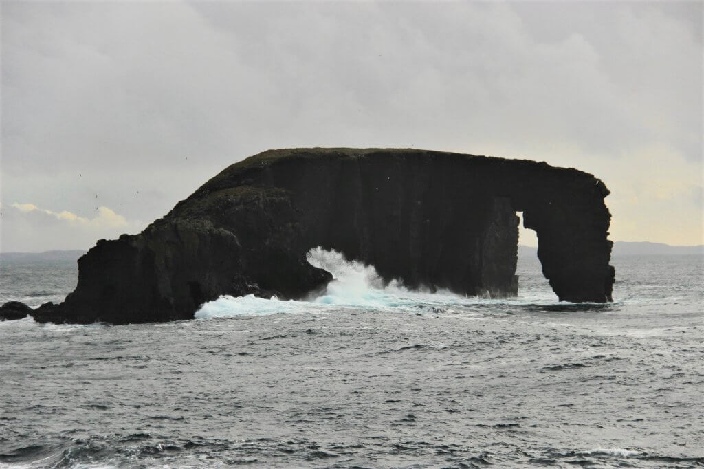 Over the hill the Dore Holm Natural Arch could clearly be seen offshore. Looking a little like an elephant with its trunk dipping into the sea with waves were crashing against all sides. The arch is large enough for a boat to go through – proven as we watched a fishing trawler make its way around and through.