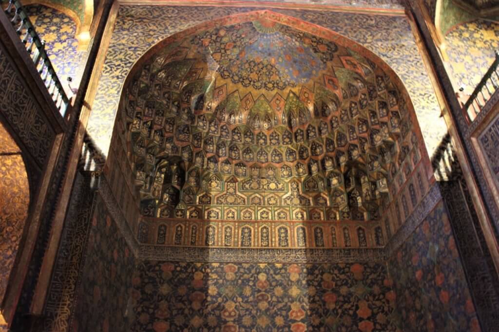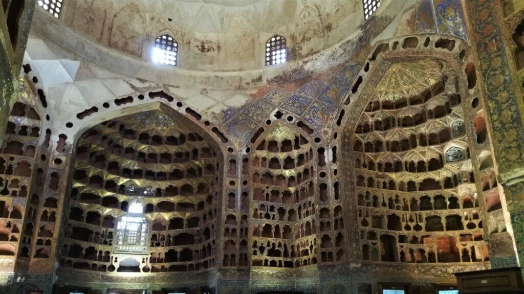 One of the most breathtaking spaces was an area designed to display a gift from ancient China in memory of the Sufi leader. Given many pieces of china a space had been created for each one in the walls and domed ceilings. While none of the china remained on display the walls themselves with their colourful gold edged paint and shell like curved shelves covering the walls and domed ceiling in the huge hall was spellbinding.
