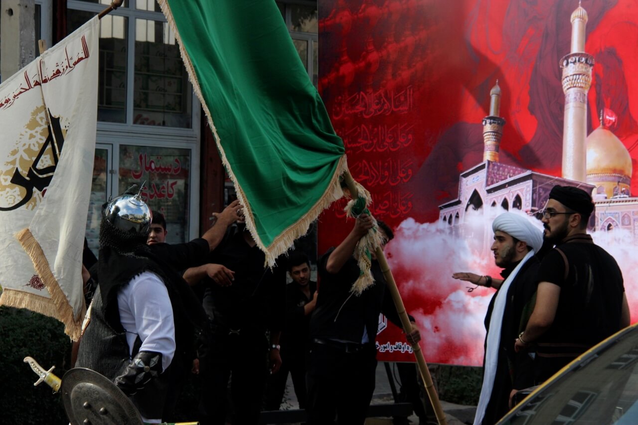 Back on our little bus – first stop Ardabil where the roads were so congested the bus could not move. Quicker to walk. The reason for the congestion was quickly revealed as we were swallowed up by the Ashura commemoration parade. Men in black, with colourful banners, coloured smoke, re-enactment scenes and loud drumming.