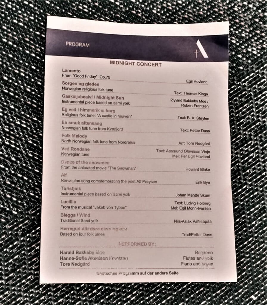 After a slip sliding bus ride and an icy slip-sliding walk up to the cathedral – the Midnight concert in the Arctic Cathedral in Tromso was a rare musical treat.