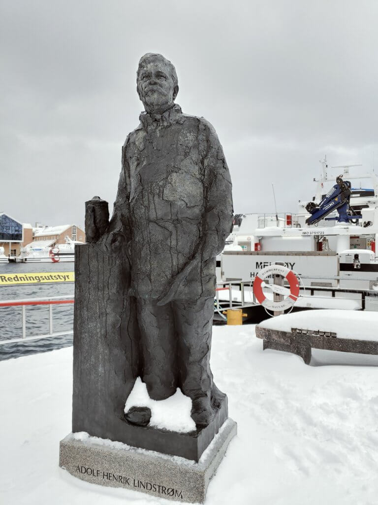 A short walk in Hammerfest and we found a statue of Adolf Lindstrom harbourside. Here is a benefit of the lectures – we knew who Lindstrom was and why he was holding a large spoon!