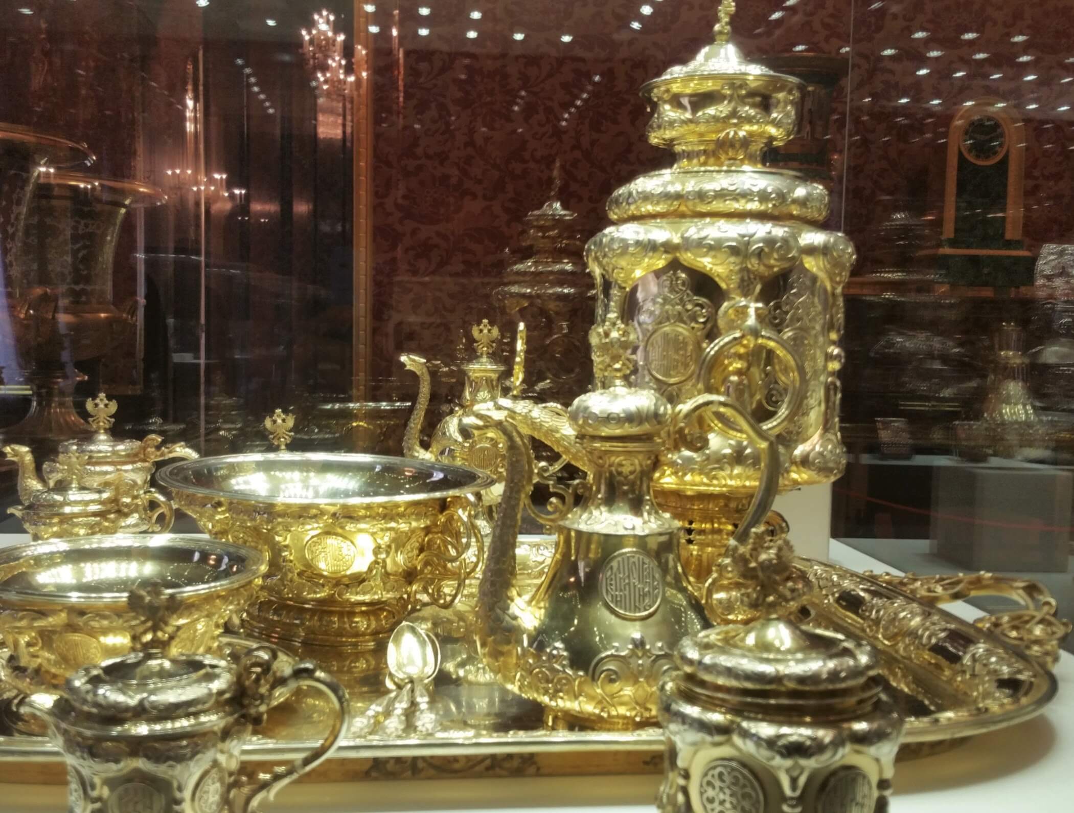 The rest of the displays mainly included silverware and gold, fine mosaic work both as dinnerware and pieces purely for display. Samovars again featured with one eye-catching set in of course over the top gold – Oh yes please …