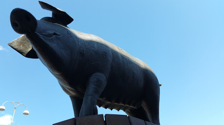 On to a delightful bronze statue of a pig that appeared to be marked for its cuts of meat. The food market was very tempting but not quite the time for food shopping. We did notice the different kinds of food stalls here – delicious looking baked goods, a stall with pork of all kinds, a whole stall of different types of smoked fish including one small dried variety served like an ice-cream on a stick and apparently a great beer snack.