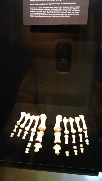 One exhibit displayed the bones of a wealthy local person who had Gout and a person probably poor whose bones showed evidence of poor nutrition.