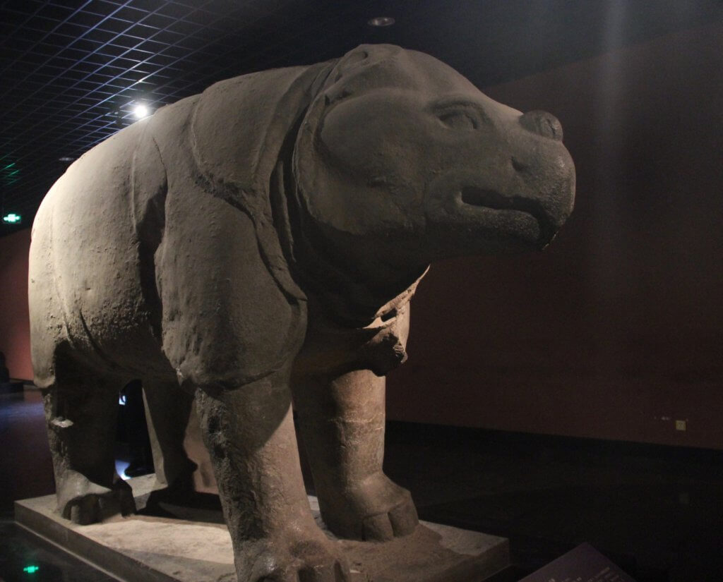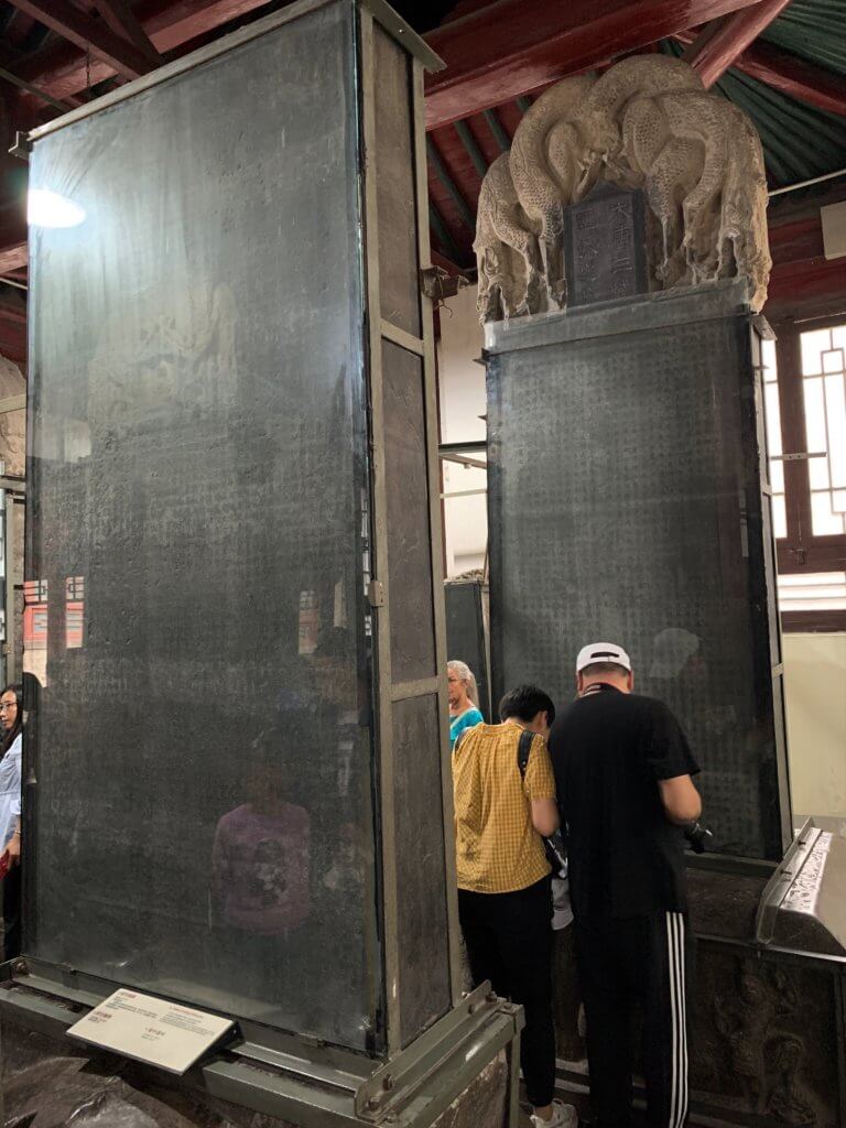We had tea at a trendy little hipster cafe called “Summer Rain” before heading to the Beilin Museum also known as the Stele Forest. This is because the main exhibition is of three thousand stone steles with magnificent calligraphy and drawings etched into them. There was also an exhibition of various stone sculptures one of which was a ten-ton stone rhinoceros!