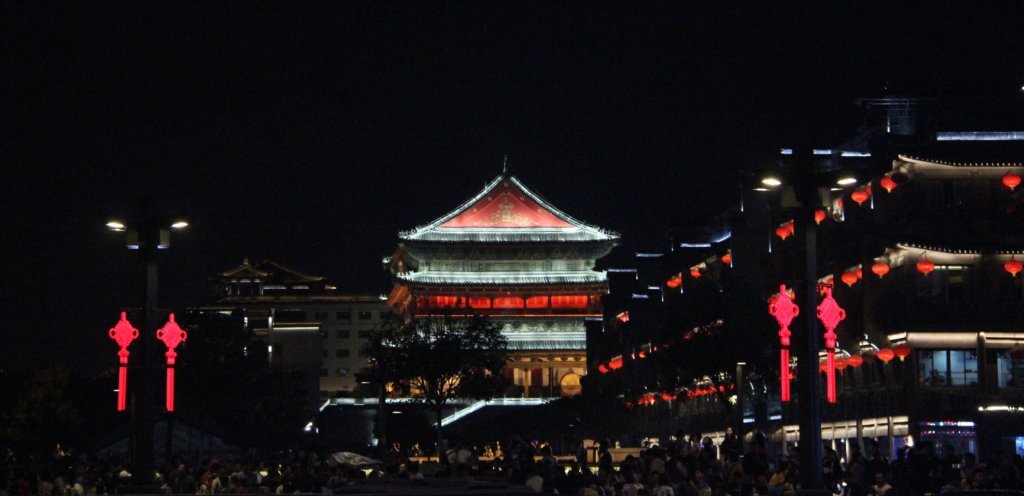 We then went to the bell tower which is right in the middle of the city where a road from each point of the compass converge. From this vantage point, you can see the city wall as it encircles the centre. We could also look over towards the Drum Tower another major feature of central X’ian.