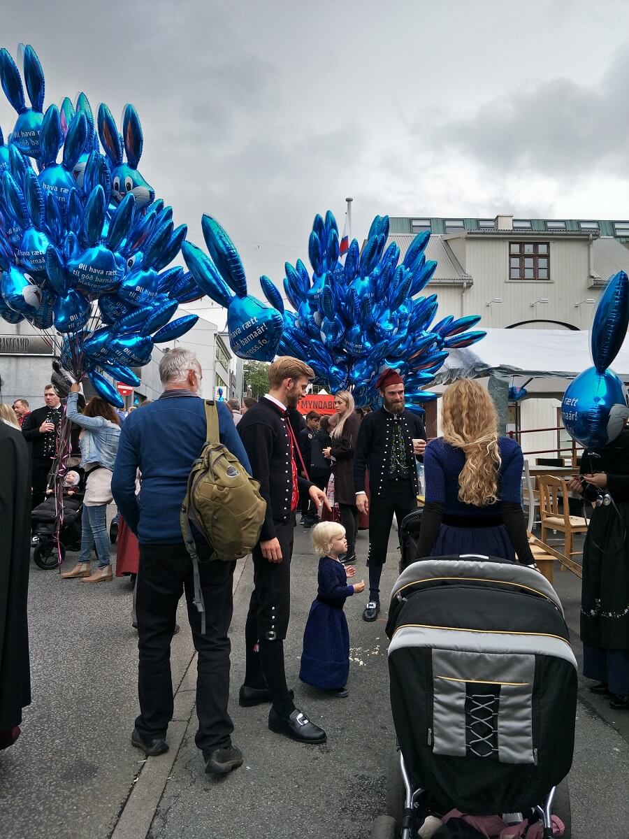 After settling in we drove into Torshavn, followed the stream of cars to find a car park and wandered through Torshavn and the celebration. For Chris it was also his first venture into the city. As we wandered we met a young man in National costume and struck up conversation – he was studying music in London.