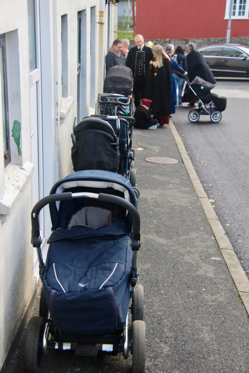 Both of us were struck by the number of babies we saw in our wanderings. Walking past a corner we discovered a line-up of prams that seemed to speak for the population boom in the Faroe Islands.