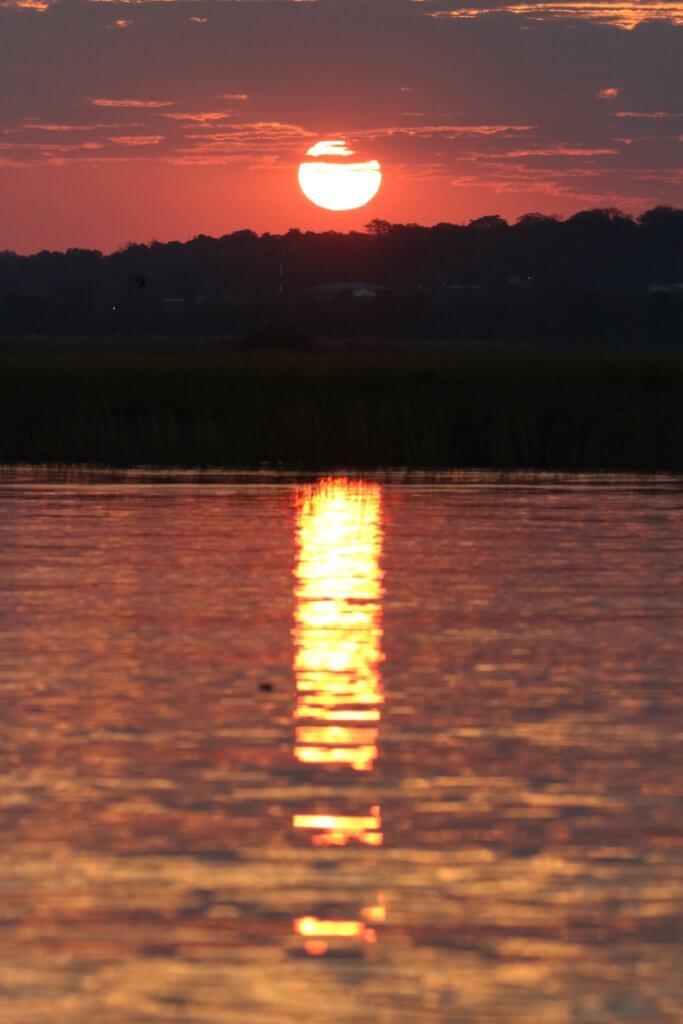 Firstly for our last 6.30 boat safari and sunrise on the water – today to the Chobe rapids where the yellow billed storks, the white fronted cormorants and reed cormorants were prolific and a challenge to photograph in the changing light on a boat pulled by the rapids.