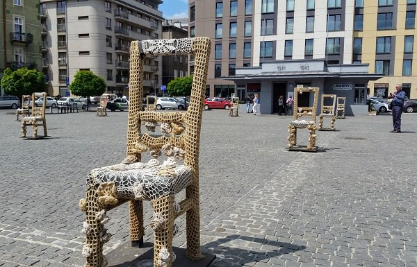 Decided to visit the Oskar Schindler museum however my navigating took us to the other end of a tramline to somewhere – nowhere near the Museum. An interesting ride to outer suburbs of Krakow and back to Plac Bohaterow Getta Square left us no time to visit the Museum today so opted for lunch instead. Plac Bohaterow Getta Square has chairs with crocheted covers marking the space – henceforth known to us as the Chair Square being unable to get our tongues around Plac Bohaterow Getta Square!
